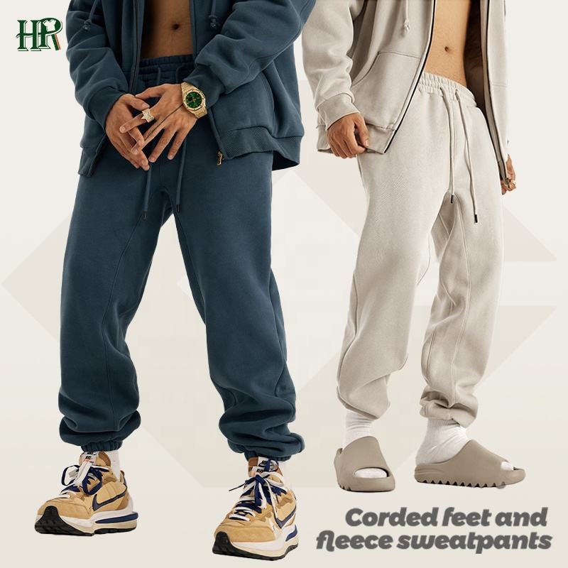 Custom Logo Thick Man Oversized Long Jogger Pants Heavyweight Cotton Cuffed Sweatpants for Men