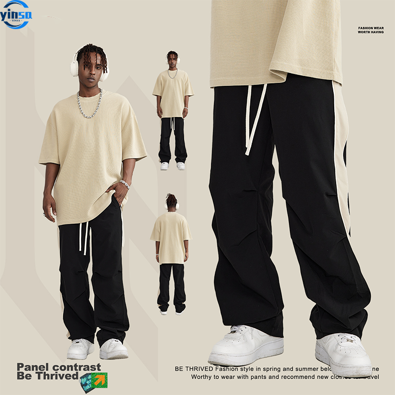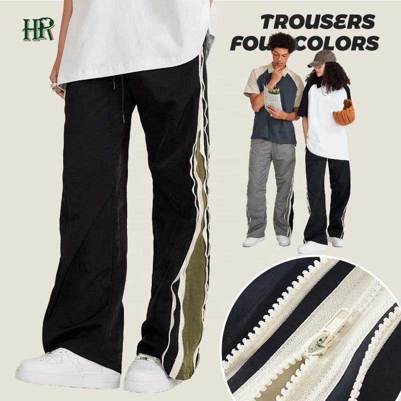 2023 Custom Thin Double Zipper Contrast Woven Trousers Casual Wide Leg Pants Wholesale