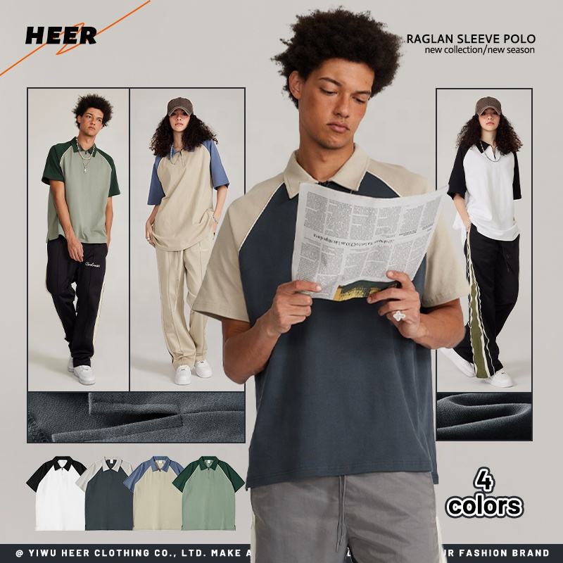 High Quality Custom Oversize T Shirt 285 Grams Wash Color Contrast Raglan Sleeve Polo T-shirt