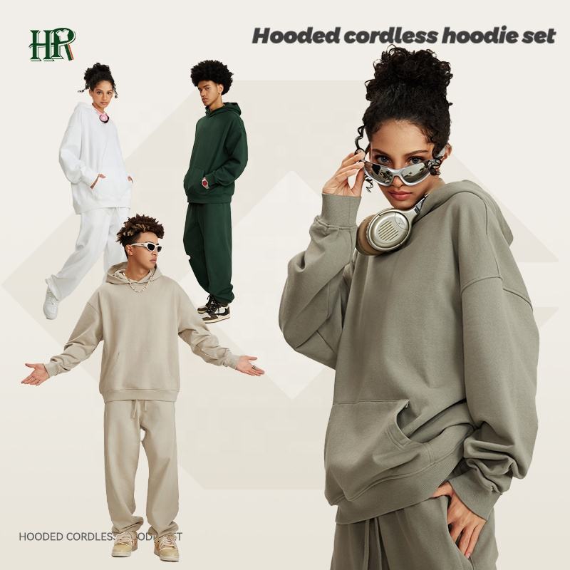High Quality Oversized Men Pullover Wholesale Custom Printing Embroidery Hoodies Set