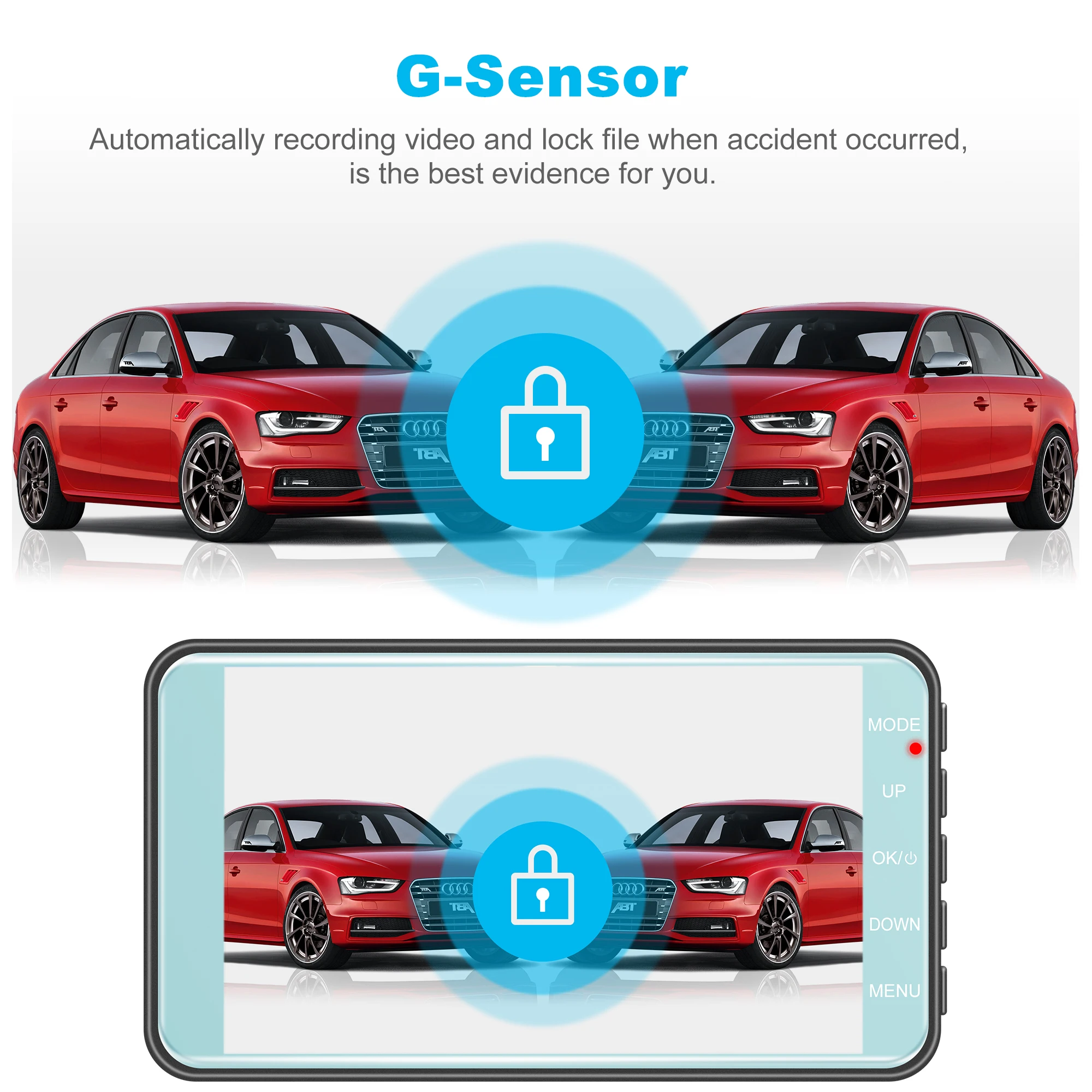 Standard version no G-sensor and parking monitor(it only show menu but not work),if you need G-sensor ,pls contact us.