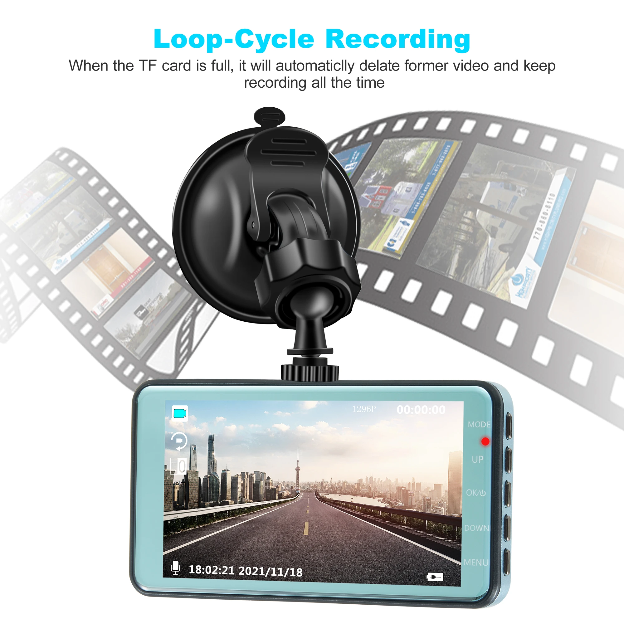 24H Dash Cam Black Box in Car DVR Camera Video Recorder Rear View Dual Lens HD Cycle Recording Video Mirror Recorder Black Box