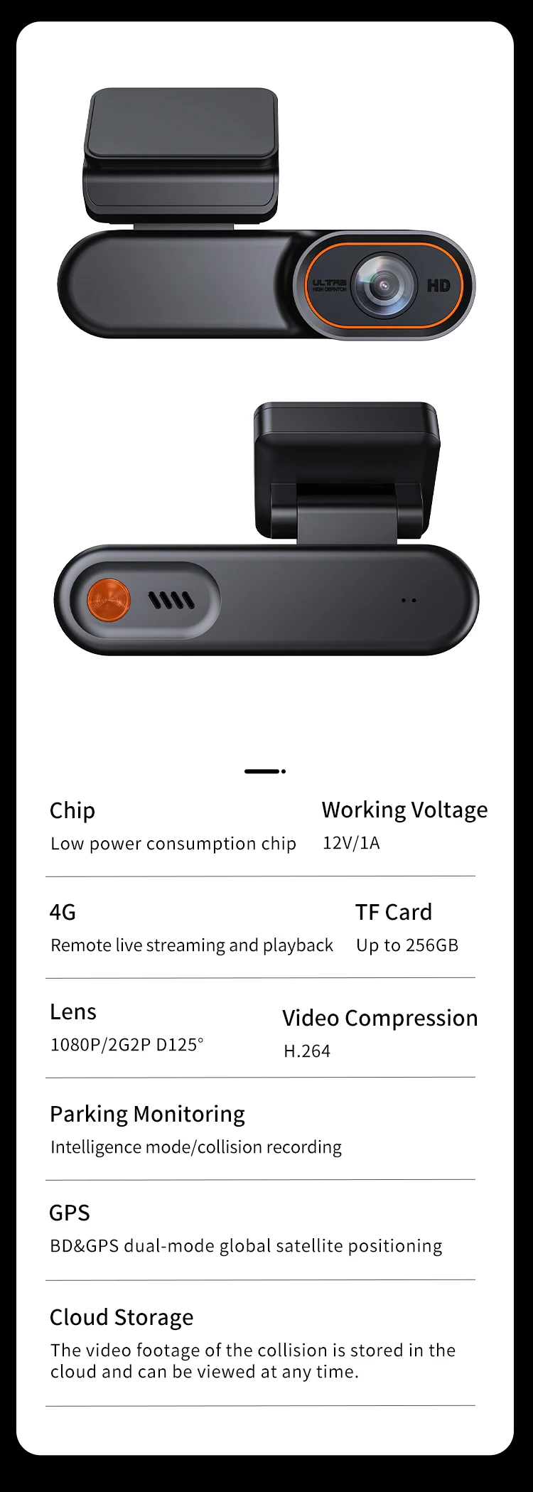 | Function | FULL COLOR, Emergency Accident Lock, Waterproof, Build-in Battery, Loop recording, park MODE |
