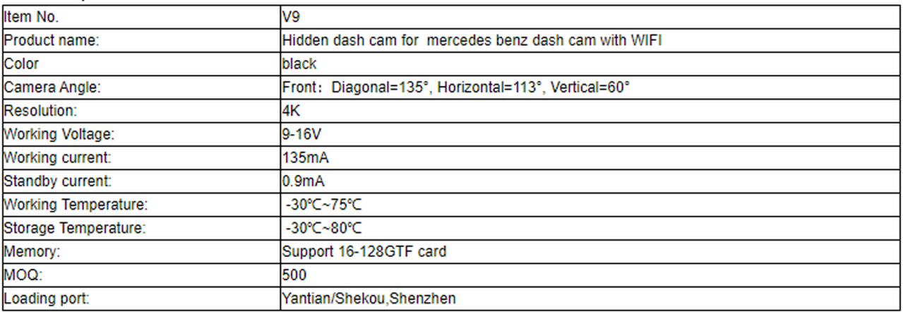 | Model Number | 4K HD Dash cam for mercedes benchi | ||||