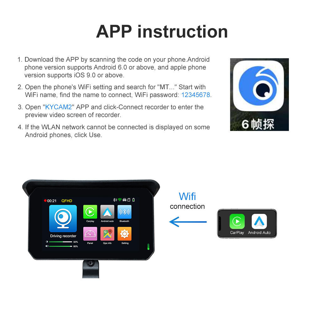 • Wifi 5.8g(iPhone) / 2.4g(Carlife), App: KYCAM2