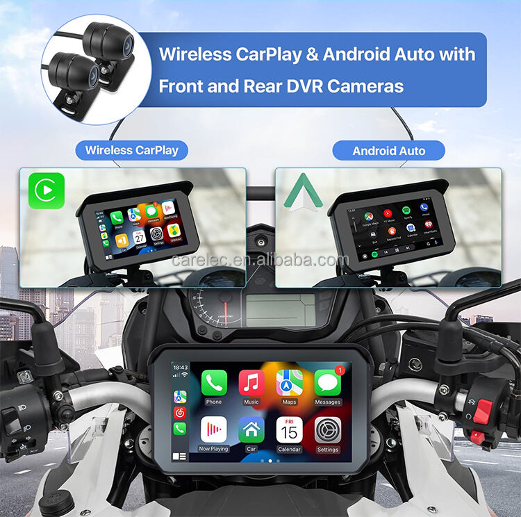 Motorcycle Carplay GPS Screen with dual 1080P recording DVR