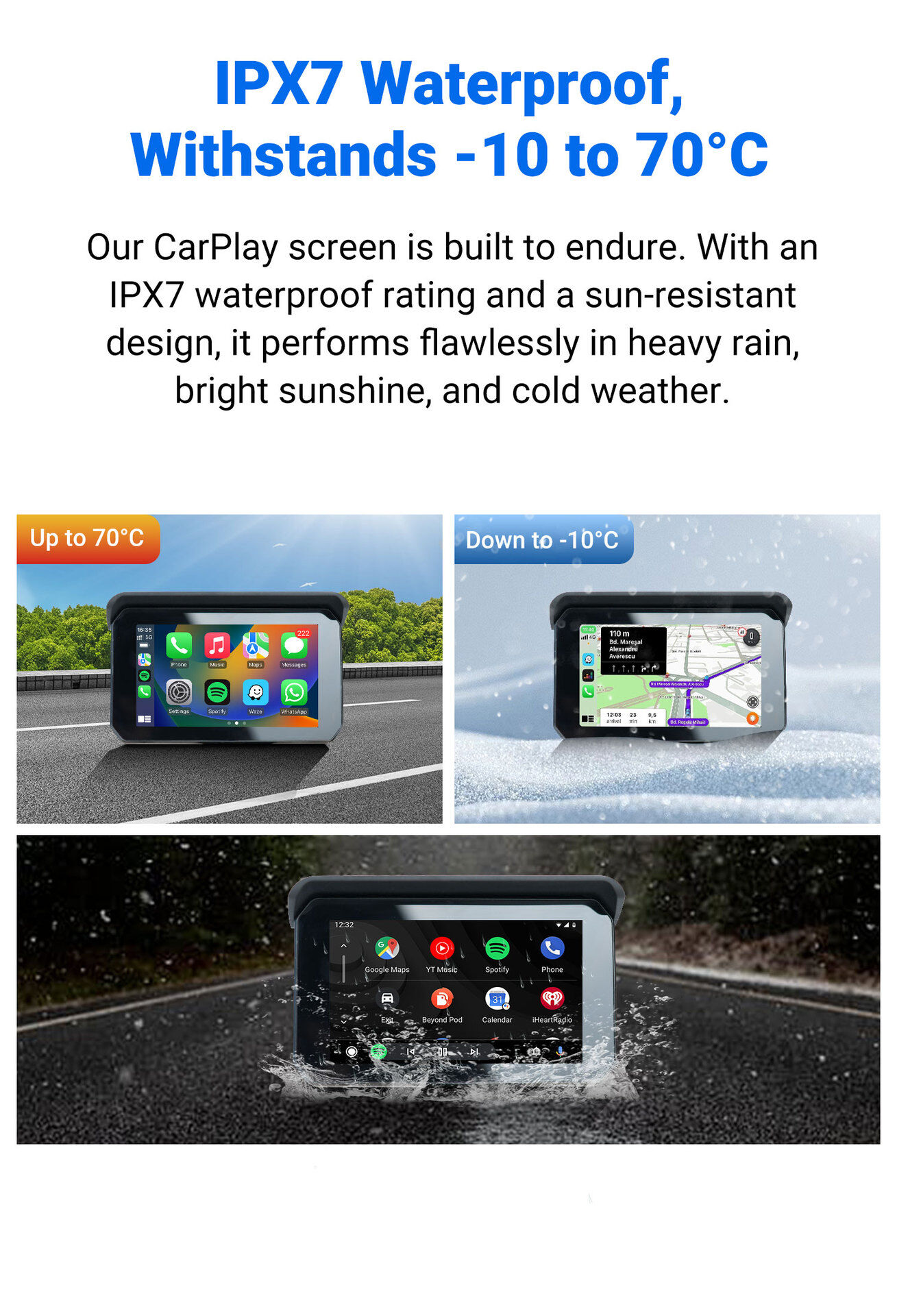 • IP65 Waterproof, Anti-shake, Removable sun-visor to block sunlight