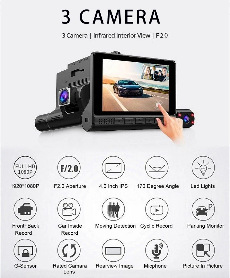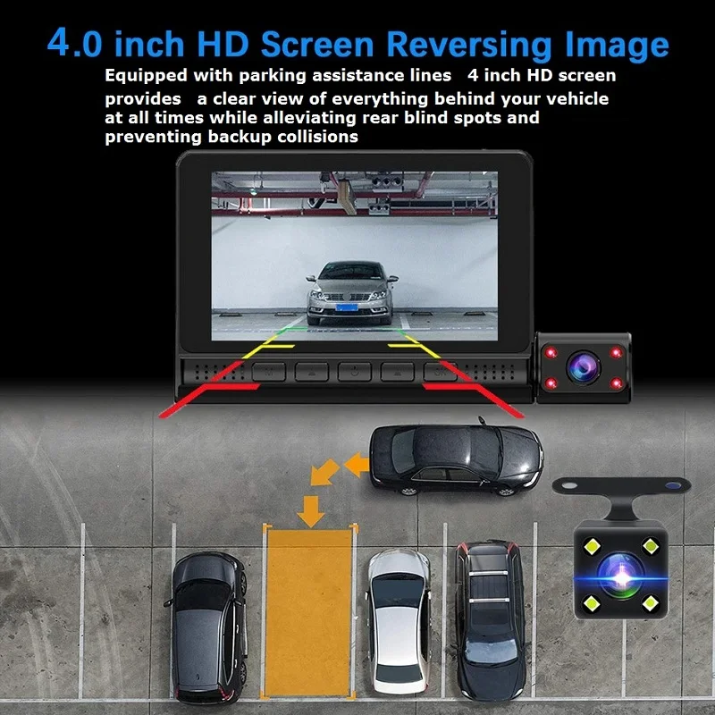 Be the first to review “Car DVR 3 Lens 4.0 Inch no Touch HD Dash camera 3 way car Dual Lens With Rear View Camera Video Recorder Auto Dash Cam” Cancel reply