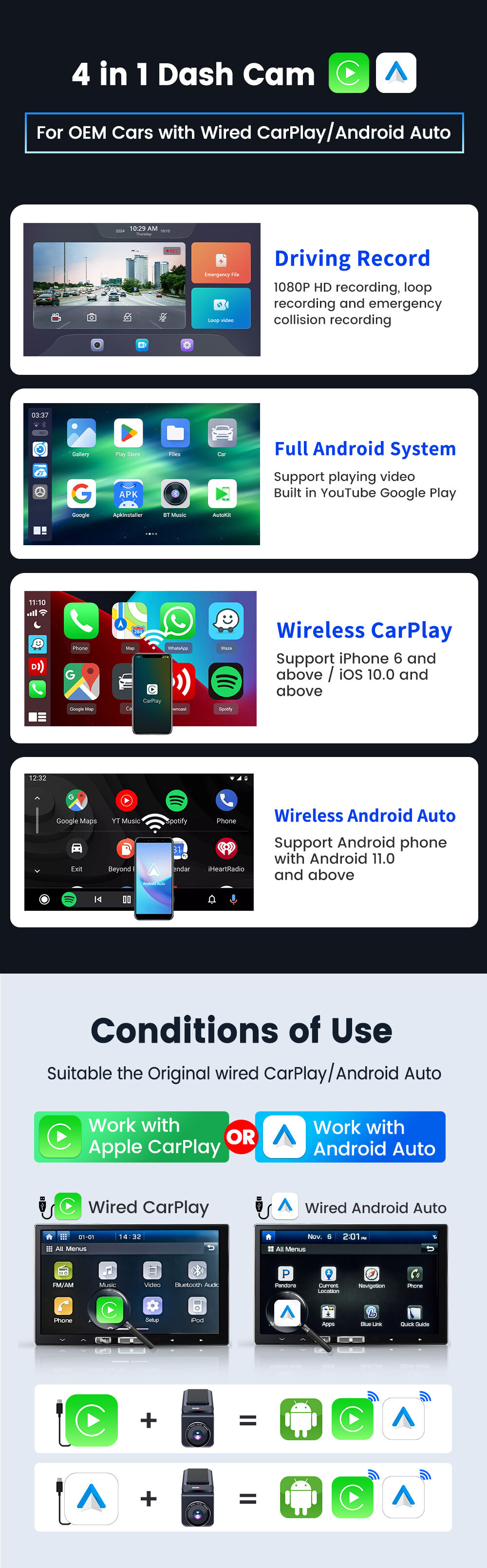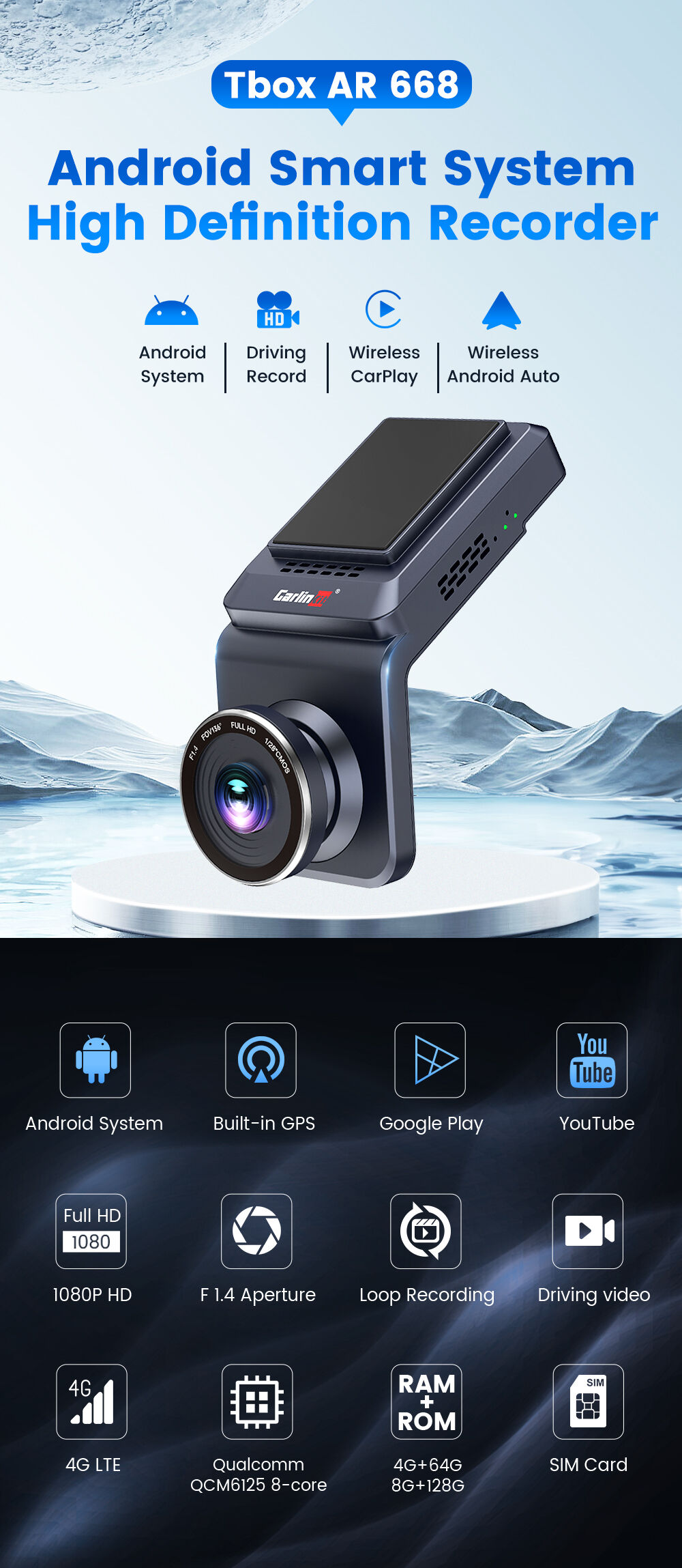 Carlinkit Ai Carplay Car Dashcam Wireless Carplay Wireless Android Auto 4G Android Dashcam