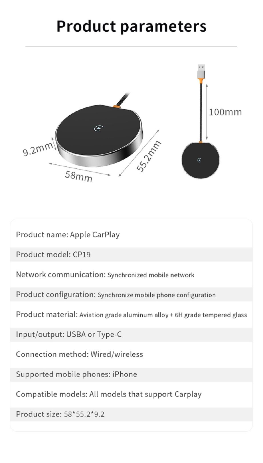 | CarPlay Adapter | CP19 | 58*9mm |