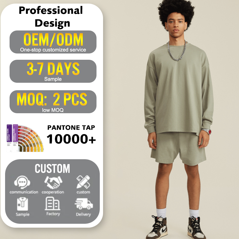 New Arrival Fashion Wear Custom Logo Cotton Solid Color Men's Clothes Two-Piece Adult Outfit Men's Short Clothing Set