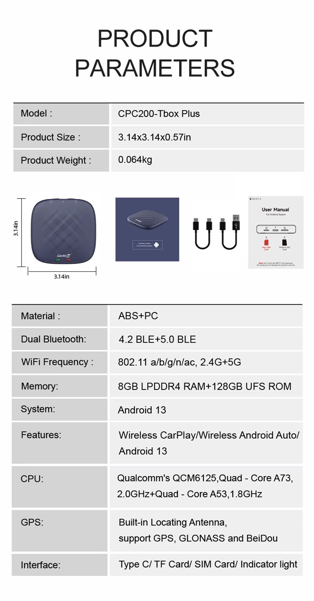 | Model Number | CPC200-Tbox PLUS(4+64GB) | ||||