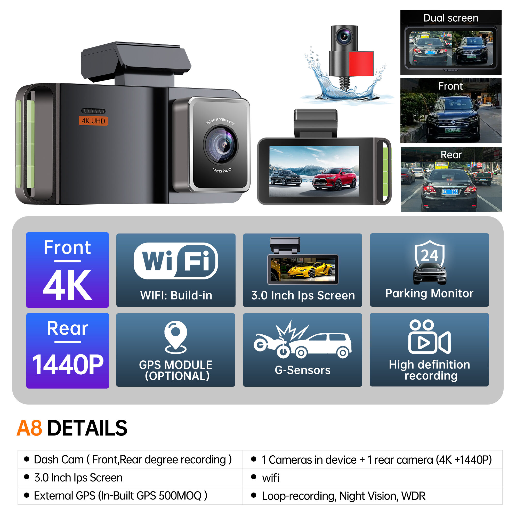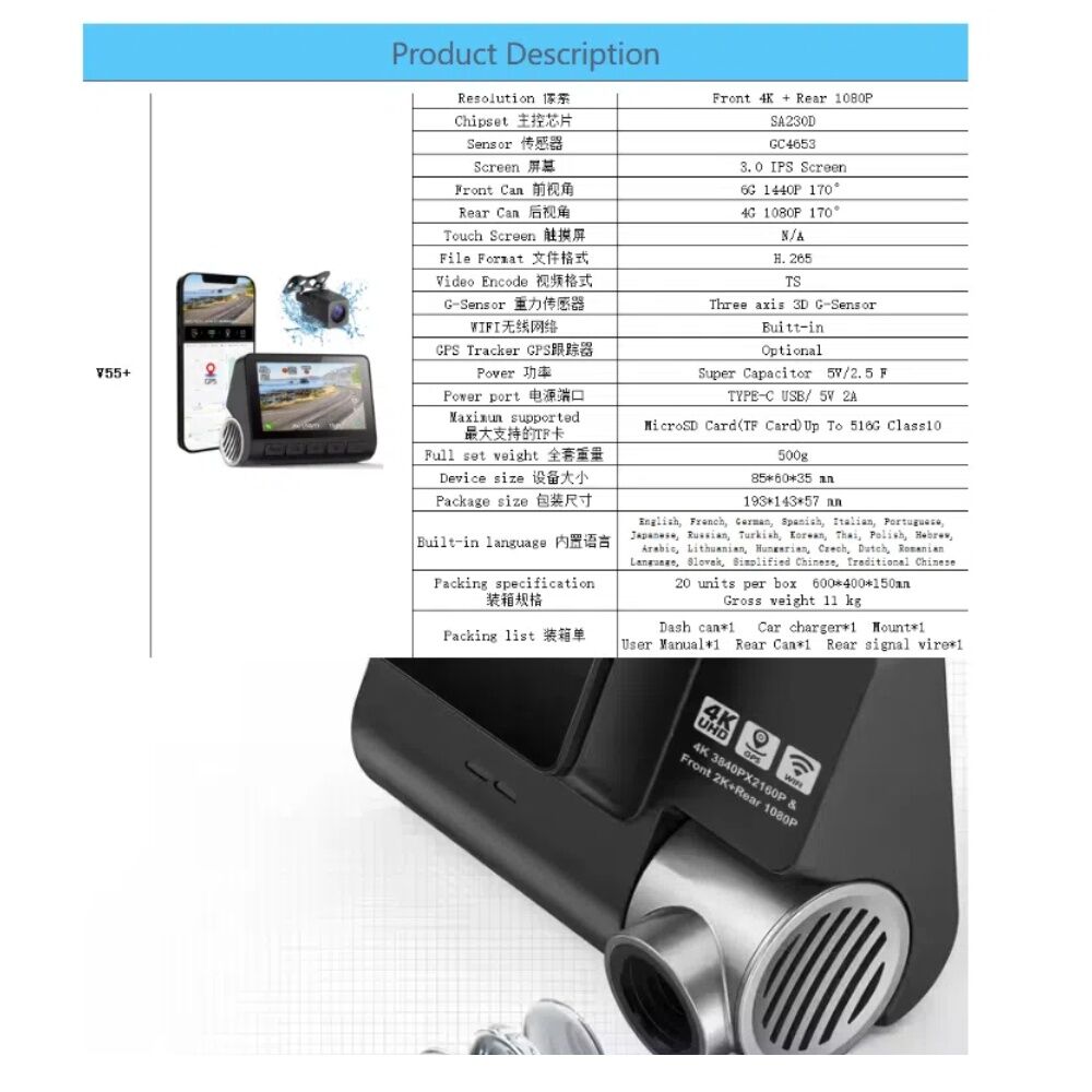 | Resolution | Front 4K/2K+Rear 1080P |