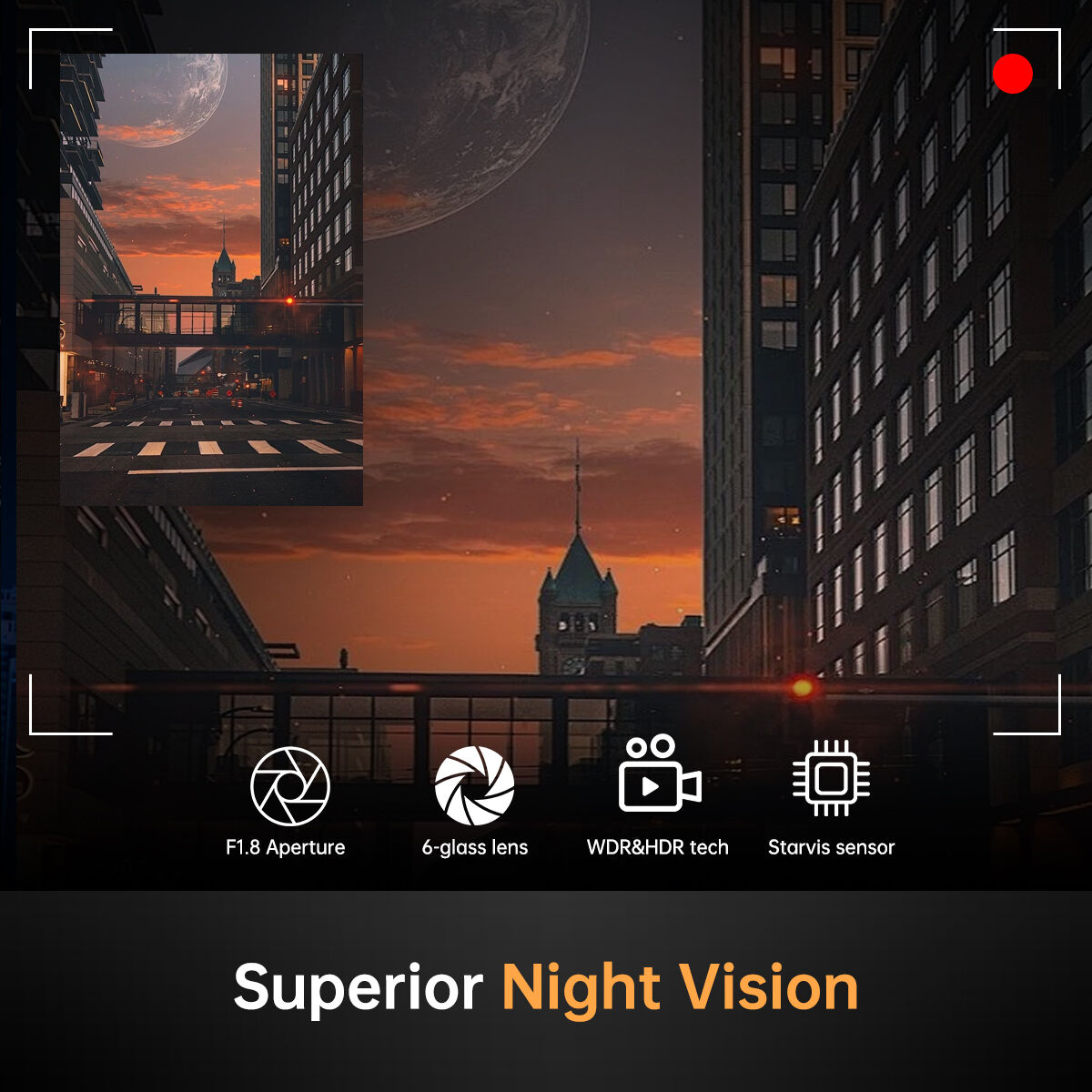 Function 1:NIGHT VISION, WDR, FULL COLOR, G-Sensor, park MODE