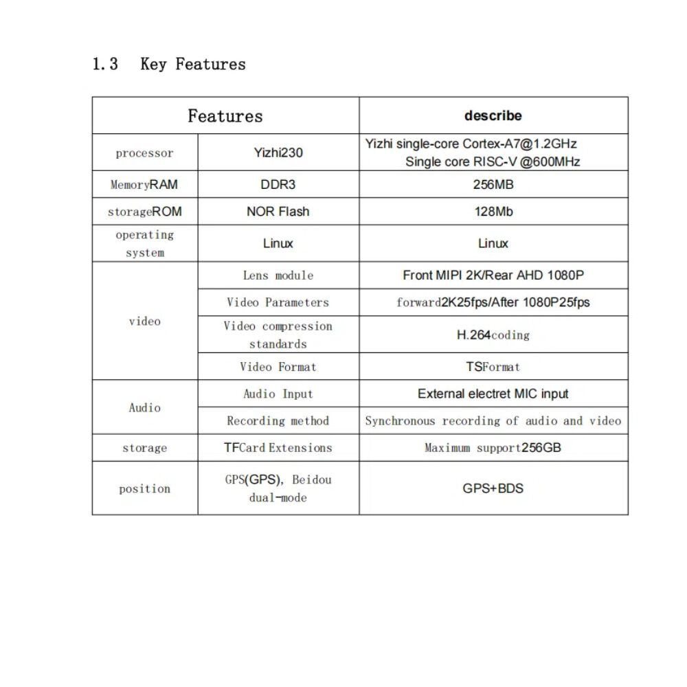 | Function | NIGHT VISION, WDR, FULL COLOR, G-Sensor, park MODE, Loop recording, Build-in WiFi, APP Control, Voice Interaction, External GPS |