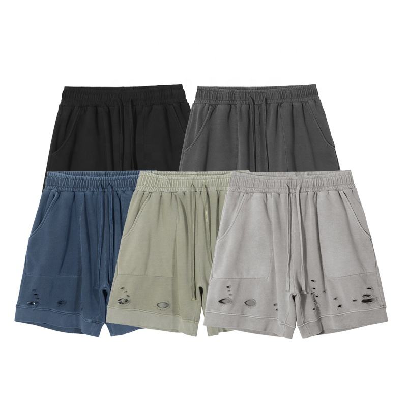 Wholesale Summer Gym French Terry Cotton Ripped Short Custom Logo Jogger Shorts for Men