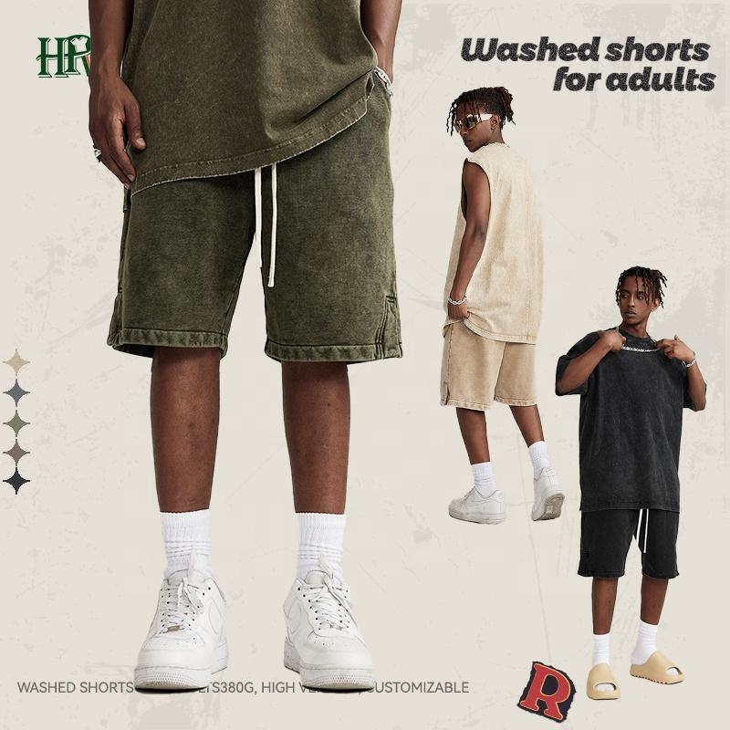 High Quality Acid Wash Men’s Shorts Sets Custom Logo Summer Cotton Shorts Screen Printing