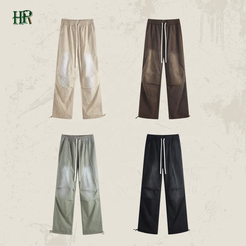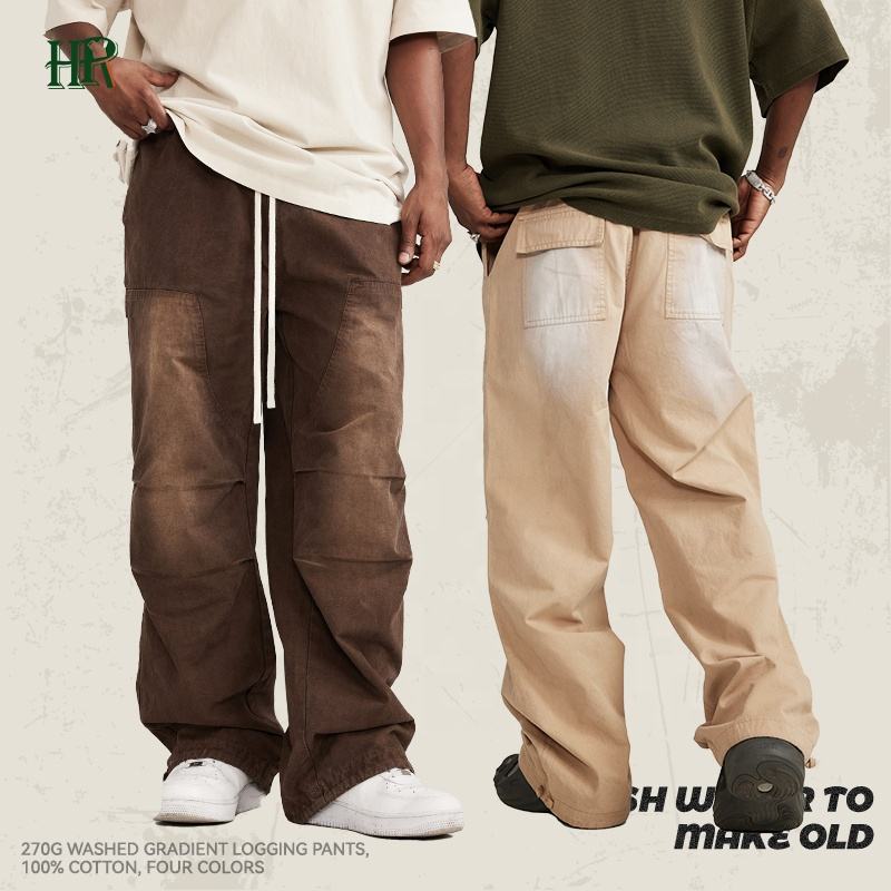 High-quality Washed Casual Street Wear Work Wash Gradually Drawn Rope Tied Feet Woven Logging Overalls Trend Pant