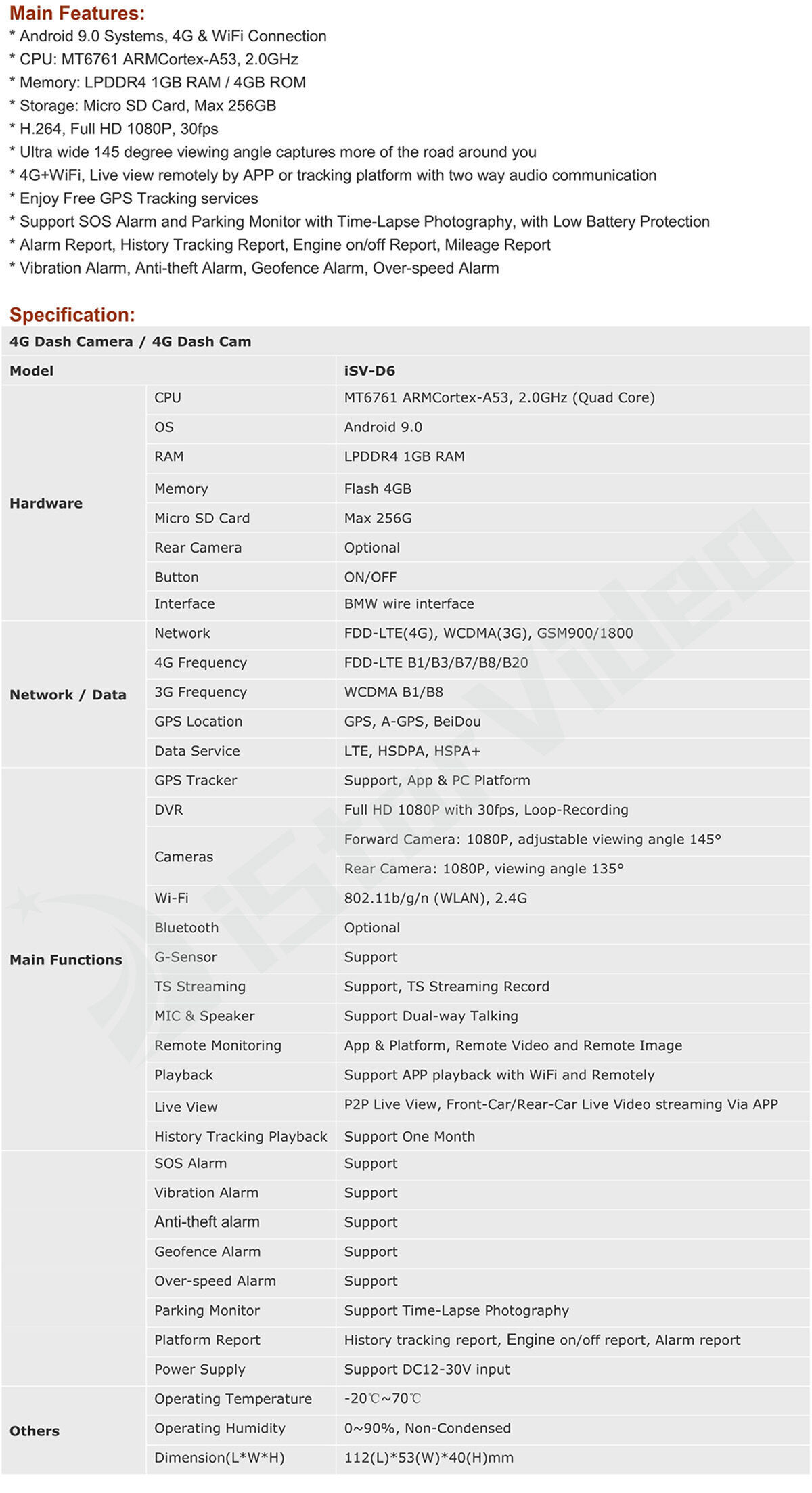 | Model Number | iSV-D6(4G)-#1616 | ||||