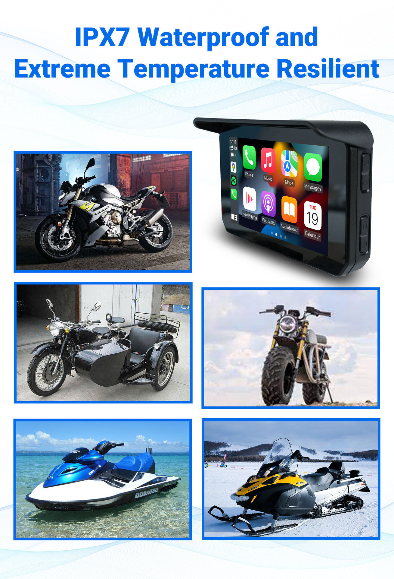 IPX7 Waterproof 5 inch Motorcycle carplay DVR GPS navigation with motorbike recorder wireless car play & Android auto