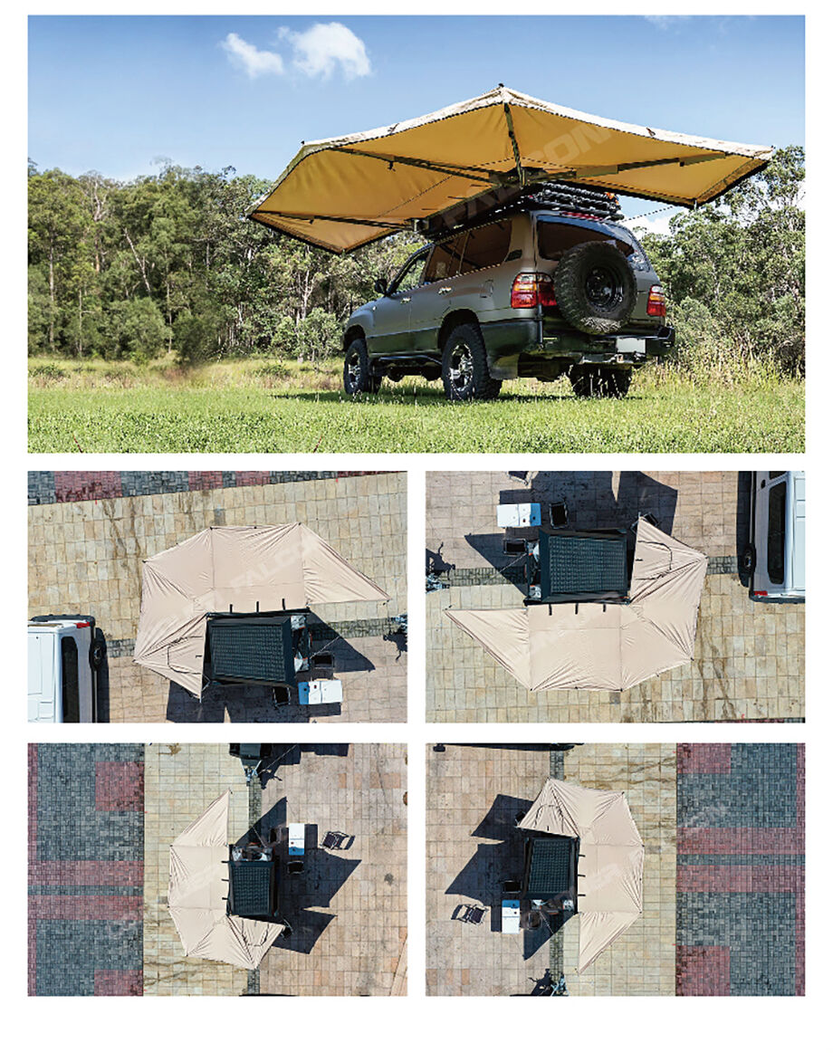 Large 270 Degree Free Standing SUV Car Awning Waterproof 4×4 3×3 Offroad with LED Light Straight Bracing Tent Style
