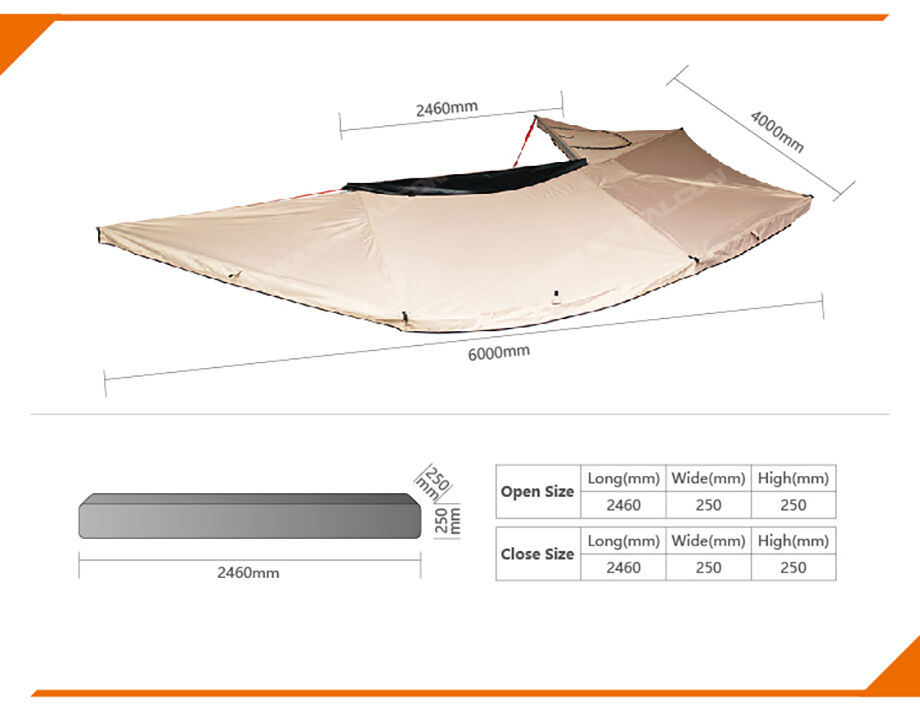 Versatile Use: Ideal for camping trips, beach outings, picnics, or tailgating events, the M100 awning expands your outdoor living area, providing comfort and convenience wherever you go.