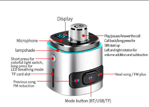 Be the first to review “Leadinway Hot selling Bluetooth FM Transmitter Rainbow LED light Bluetooth carkits handsfree car fm transmitter QC3.0 car charger” Cancel reply