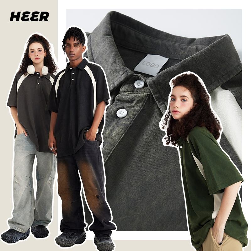 High Quality Custom Oversize T Shirt 285 Grams Wash Color Contrast Raglan Sleeve Polo T-shirt