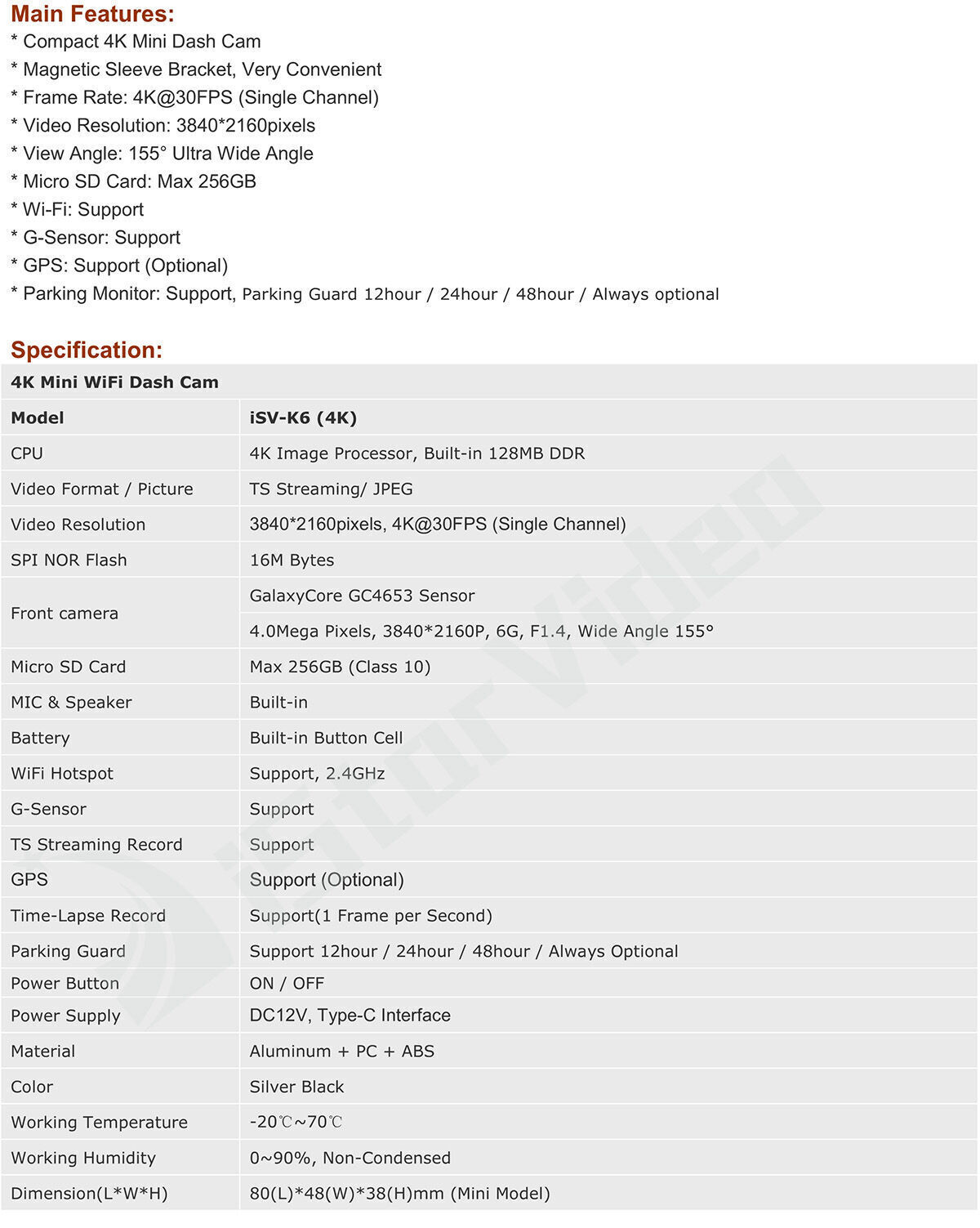 | Model Number | iSV-K6Pro(4K)-#6688 | ||||