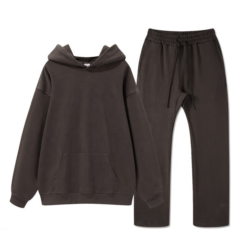 Embossed 3D Unisex Oversized Heavyweight Hoodie Set Cotton Custom Blank Men's Hoodies Set