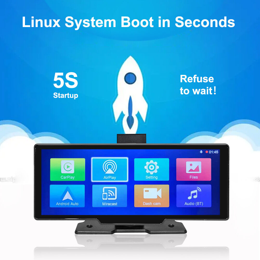 Portable 10.26″ big screen Smart Carplay Android Auto Gps Wifi 5W speaker 4K dash camera recorder Carplay Screen