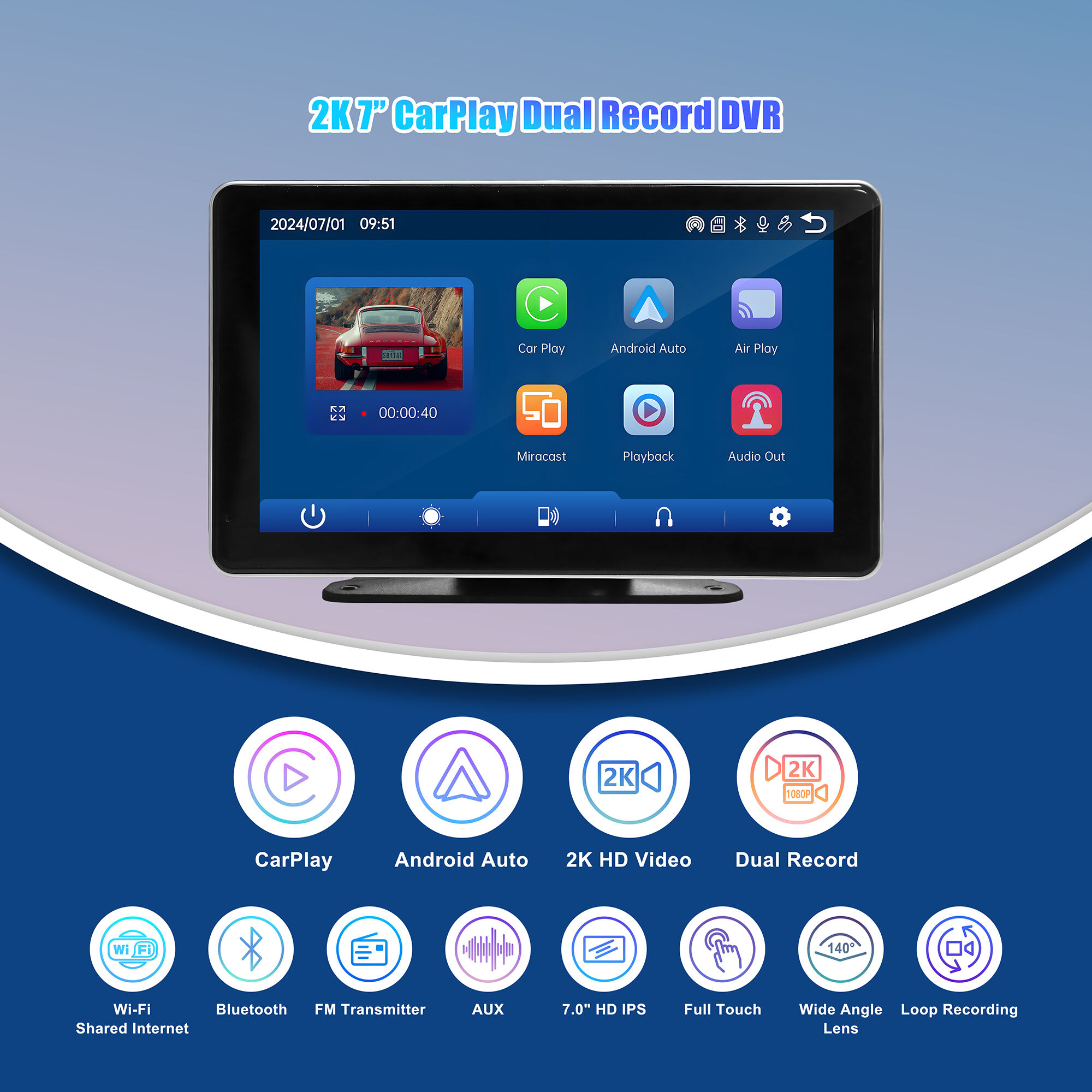 7 inch 2.5K Carplay DVR Recorder