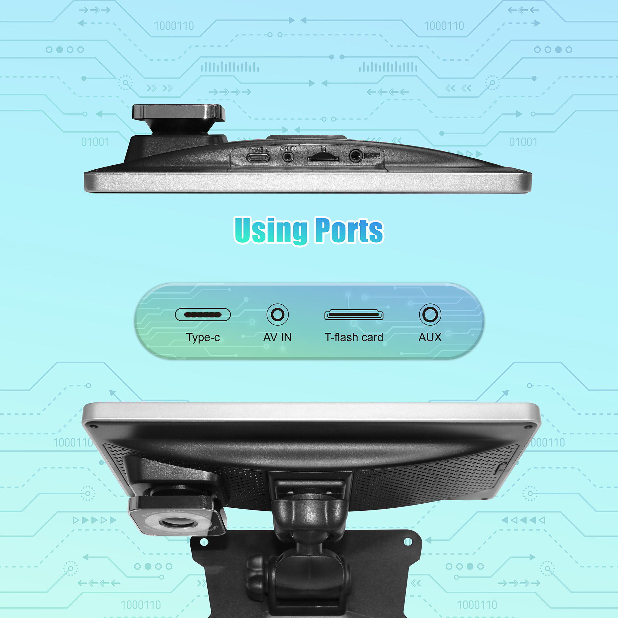 | ■ High-performance processor | ■ BT+AUX+FM+Recorder Speaker | ■ 7.0″ 1024*600 HD Smart Screen | ||
