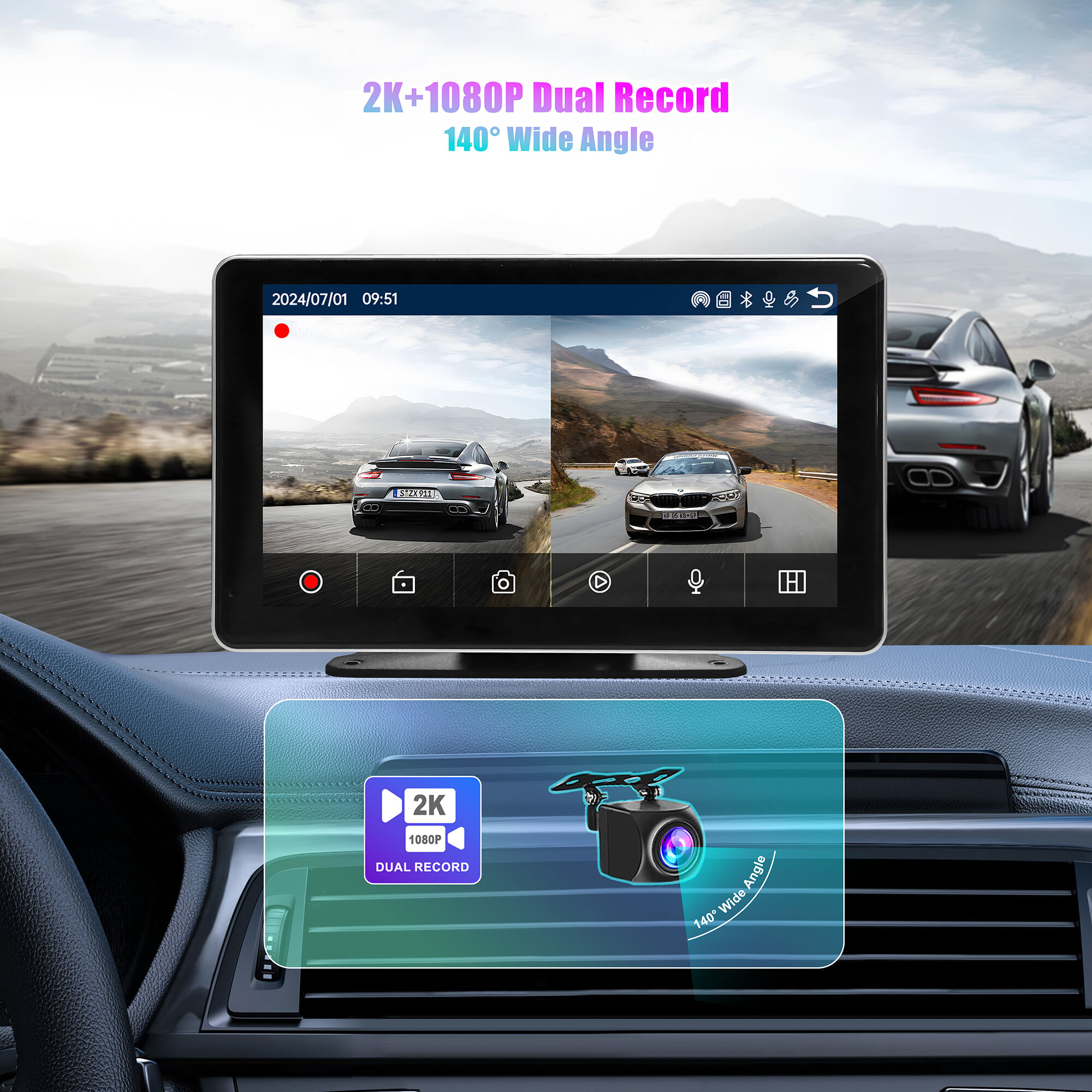 | ■ 2K+1080P Camera | ■ 2.4G/5G WIFI | ■ Carplay+Android Auto | ||