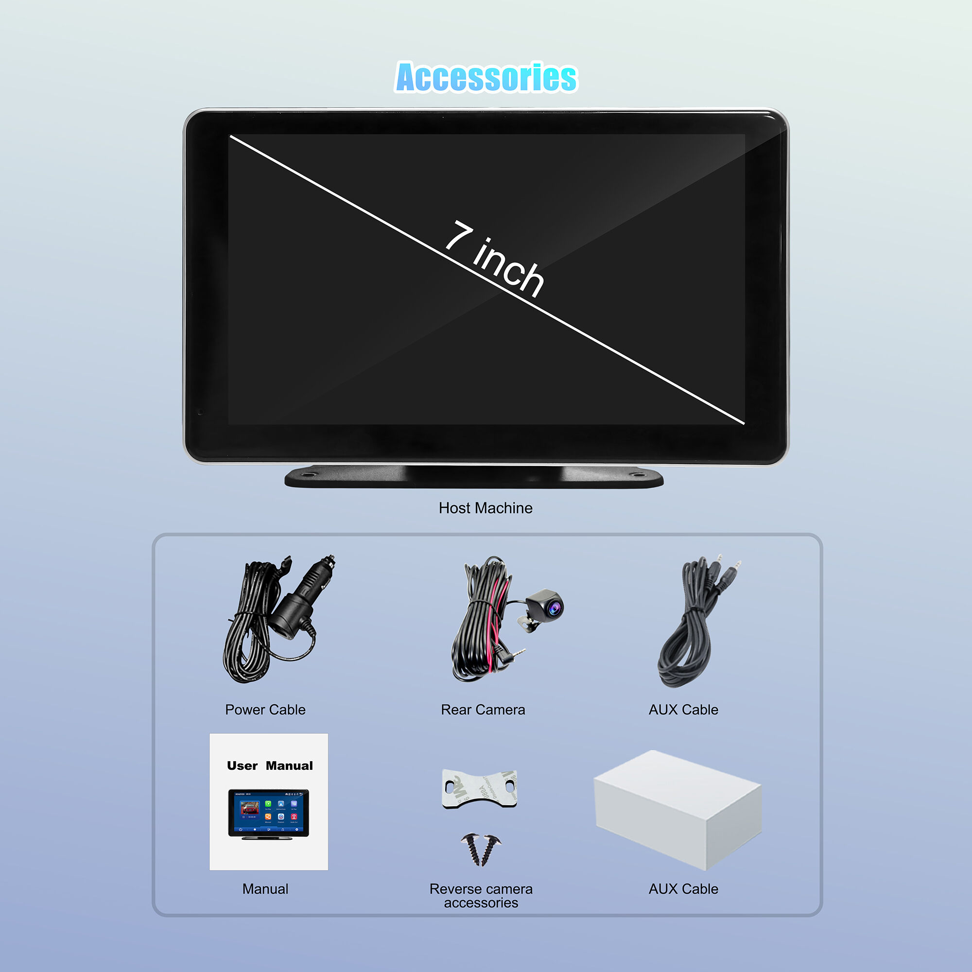 Model No.: D700W Item: 2K 7″ Wireless CarPlay Android Auto With Front Rear Dual Record DVR