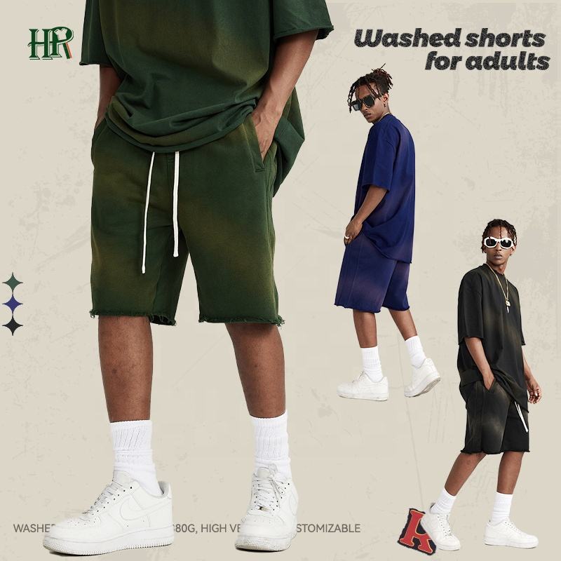 Custom Logo Street Acid Wash Distressed Running Workout Gym Sports Sweat Vintage Men Shorts
