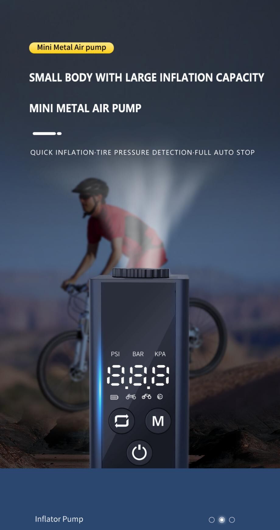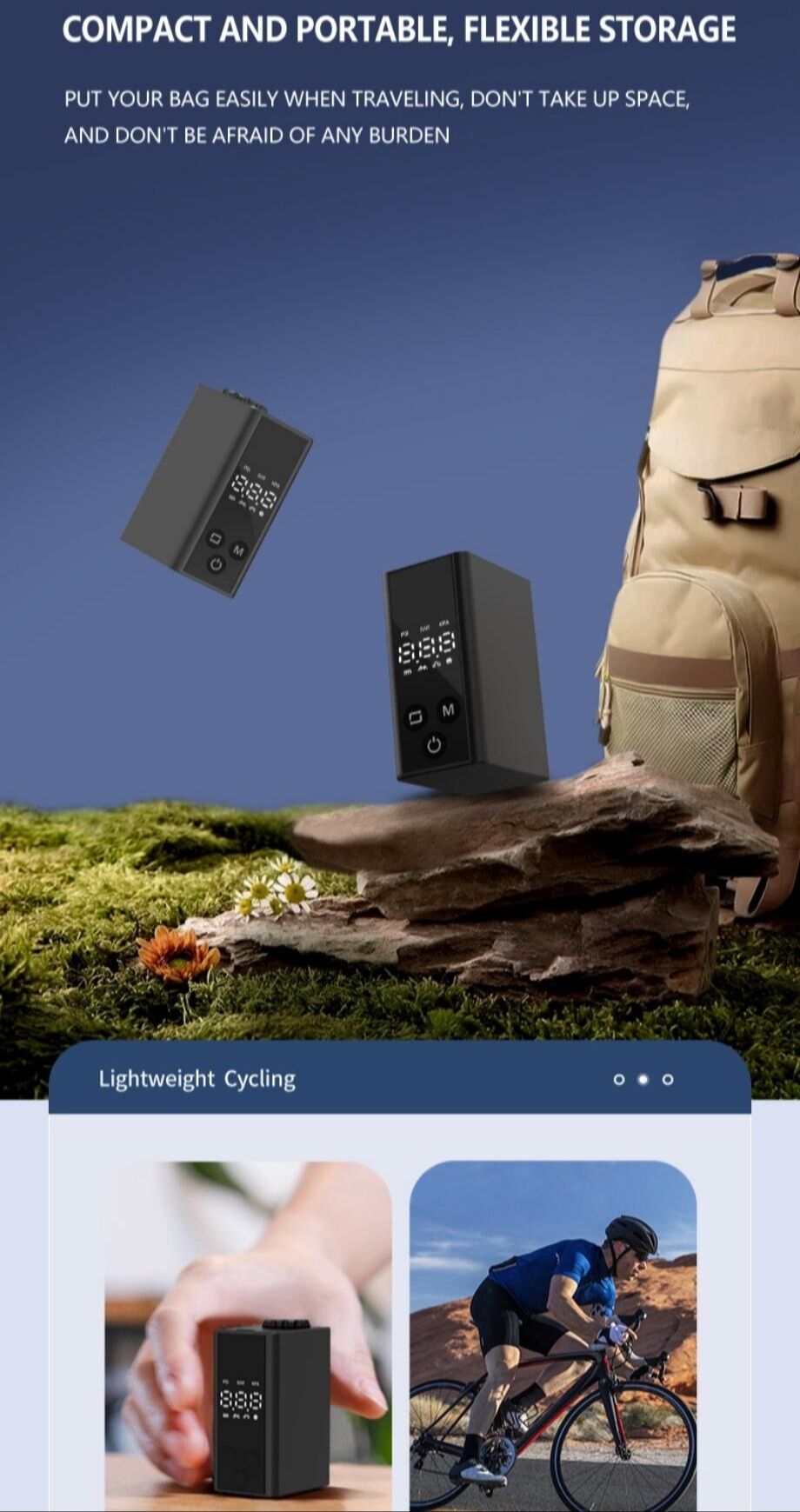 1. Small size but large air volume. It can quickly replenish air, accurately measure pressure, and automatically stop when fully inflated. Equipped with a digital display that can show pressure units (PSI, BAR, KPA).