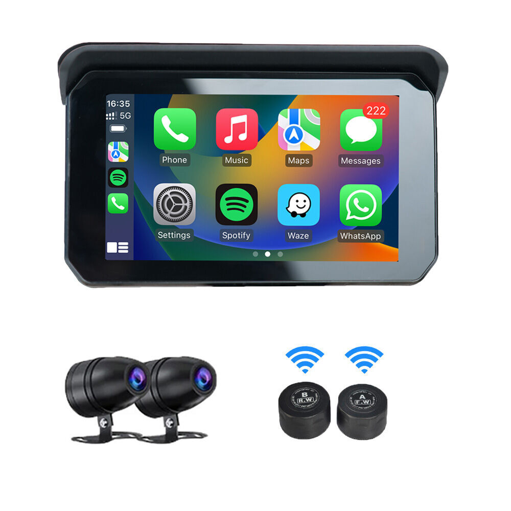 Waterproof Portable 5″ Universal Wireless Motorcycle Navigator Carplay Screen Android Auto TPMS dash Camera For Motorbike