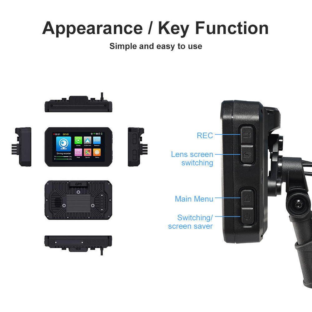 Motorcycle Carplay GPS Screen with dual 1080P recording DVR+TPMS