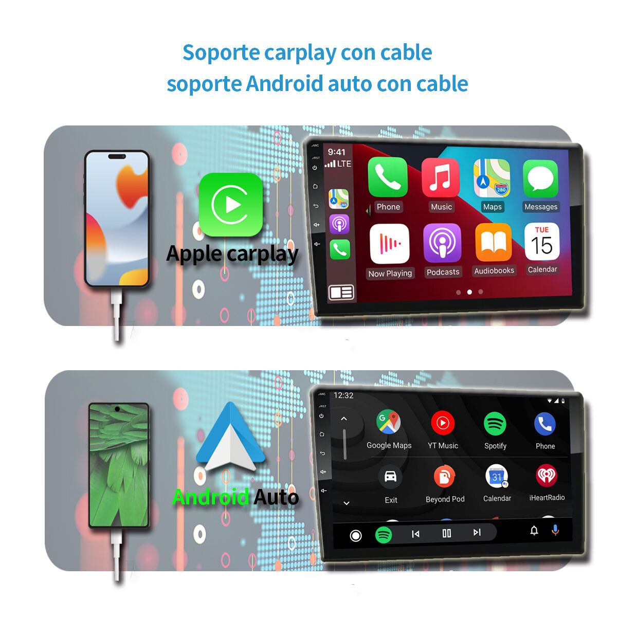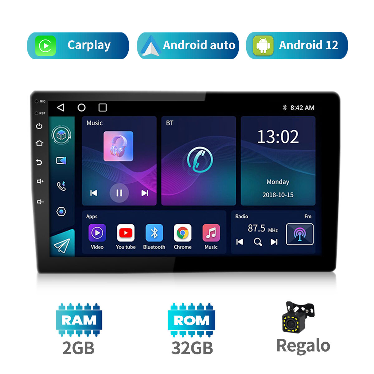 android 12.0 screen car media player with 9inch IPS screen, with carplay and android auto.