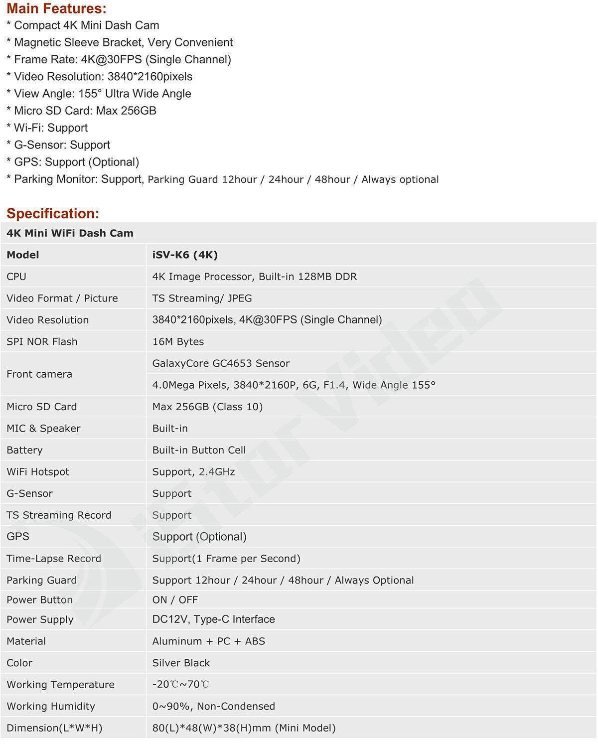 | Model Number | iSV-K6Pro(4K)-#1688 | ||||