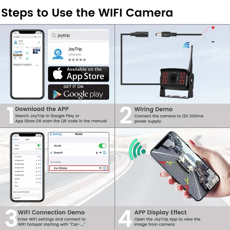 Introducing Our New Wireless Backup Camera – Works with your smartphones via our downloadable APP allowing you to easily connect to the camera.