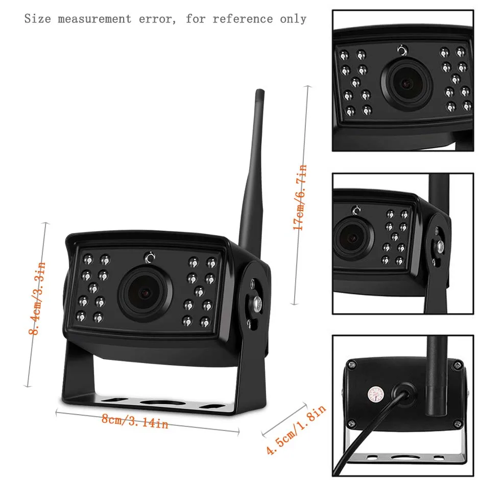 * Adjustable Camera Body and Super Night Vision Performance—The phone backup camera body angle can be adjusted for about 90 degrees, after adjusting to the right angle, you can fix the screws. 10-15M night vision distance with 0.1Lux minimum illumination and 18PCS of infrared LEDs.* 30M~50M,Transmission Distance, The Fisheye 4 Glass Lens . 160 Degree Visual Angle .Camera Pixel 1280*720P . Video Recording Format /MP4 . Video Record Pixel : 648*480P for Screen .