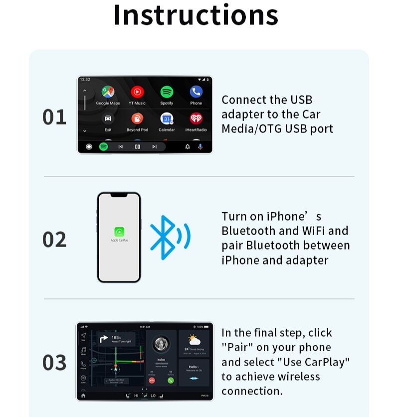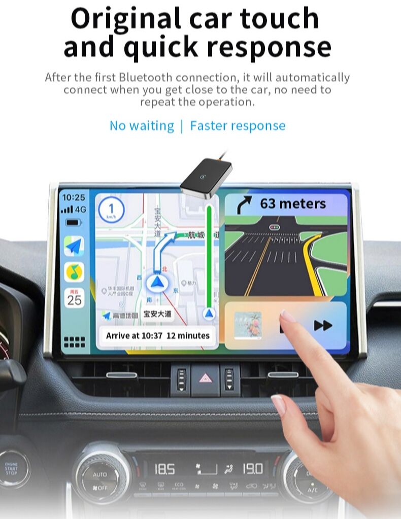 This product is suitable for models with the original car with wired CarPlay or Android Auto. Through the USB interface of the car, the original car wired CarPlay or Android Auto can be upgraded to wireless CarPlay or Android Auto. Provide users with a more convenient driving experience.